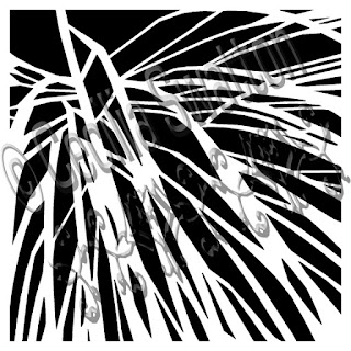 Above:  The top (yellow) layer was made with Sassy Spray.  The underneath layer was made with (top, right) one of my  stencils, which come in two sizes, 6" x 6" and 4" x 4".  The lower left print was made with my 4" x 4" Fern Fronds Silhouette stencil.